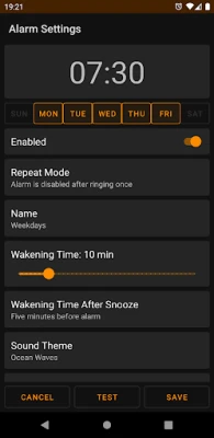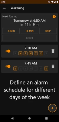Wakening is an alarm app that gradually brightens the screen and play's pleasant sound that gently get louder, helping you wake up peacefully. It has all the features you expect from an alarm clock, but lets you wake refreshed instead of being shocked awake every morning.
