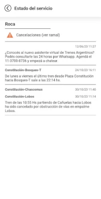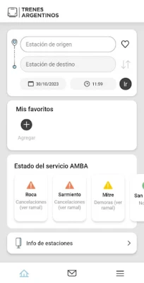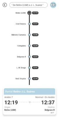 Trenes Argentinos es la aplicación oficial y gratuita del Trenes Argentinos Operaciones para que cada día cuentes con más información para tu viaje en tren. Podrás confirmar los horarios de partida y llegada de los trenes, conocer el estado del servicio en tiempo real y enterarte al instante de los cambios en el recorrido. Al mismo tiempo, podrás acceder a la información detallada de cada una de las estaciones de la traza (ubicación, horarios de atención y medios de transporte cercanos, entre otros datos), personalizar tus recorridos favoritos, chatear con nosotros y acercarnos reclamos y sugerencias.